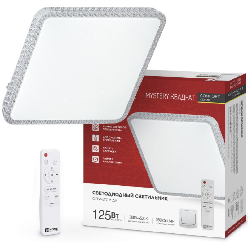 —Светильник светодиодный COMFORT MYSTERY Квадрат 125Вт 230В 3000-6500К 10000Лм 550*80мм с пультом IN