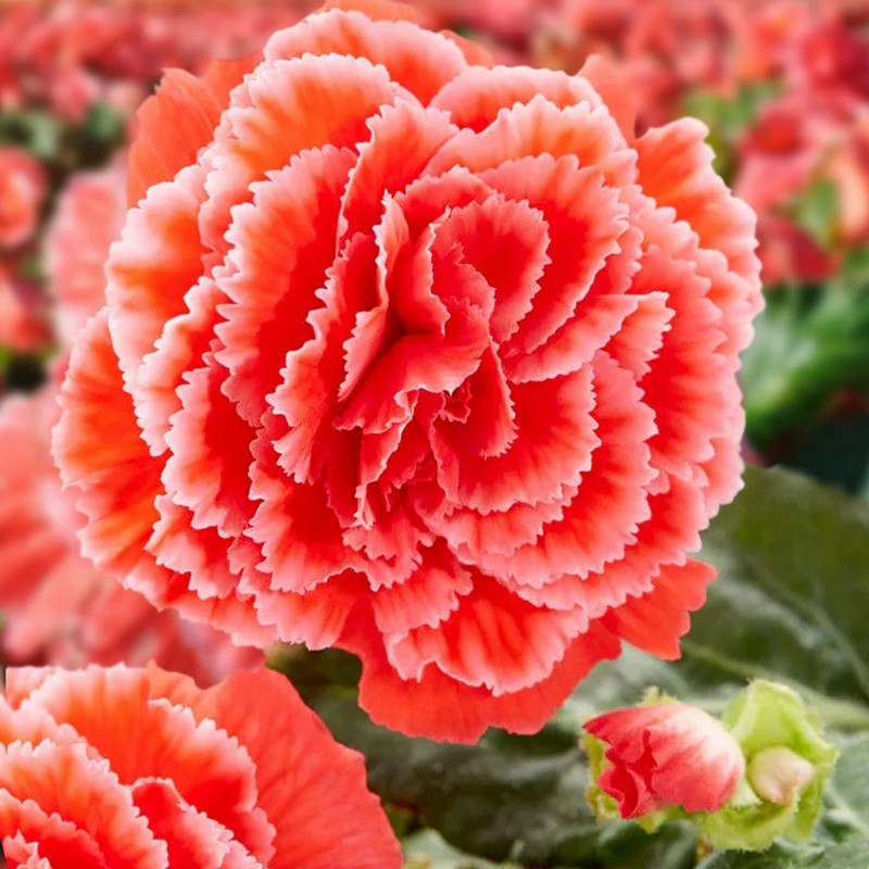 Бегония с восхитительными цветками до 15 см в диаметре! Складчатые лепестки с мягкой гофрировкой тёплых кораллово-розовых оттенков оторочены белым кружевом по краю. Нарядная компактная бегония устойчива к жаре. Украсит подвесные корзины и кашпо на балконе, крыльце и патио, гармонично впишется в садовые компазиции. Позаботьтесь о том, чтобы растение находилось не на открытом солнце, а в притенении.