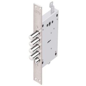 Замок врезной Гранит 1.06.01 предназначен для дверей усиленной конструкции. Соответствует 4 классу. Кодовый механизм сувальдного типа обеспечивает более 1,5 млн. комбинаций. 5 ригелей диаметром 18 мм, тяги.