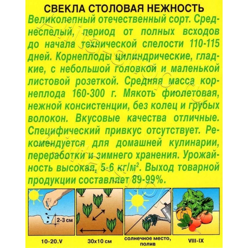 Посев семян в открытый грунт на глубину 2 см. Прореживают всходы обычно в два приема. Первый раз - с развитием первых двух пар настоящих листочков. Второе прореживание проводят, когда корнеплоды достигнут диаметра 2-3 см. Растениям необходимы регулярные поливы, прополки, рыхления и подкормки.