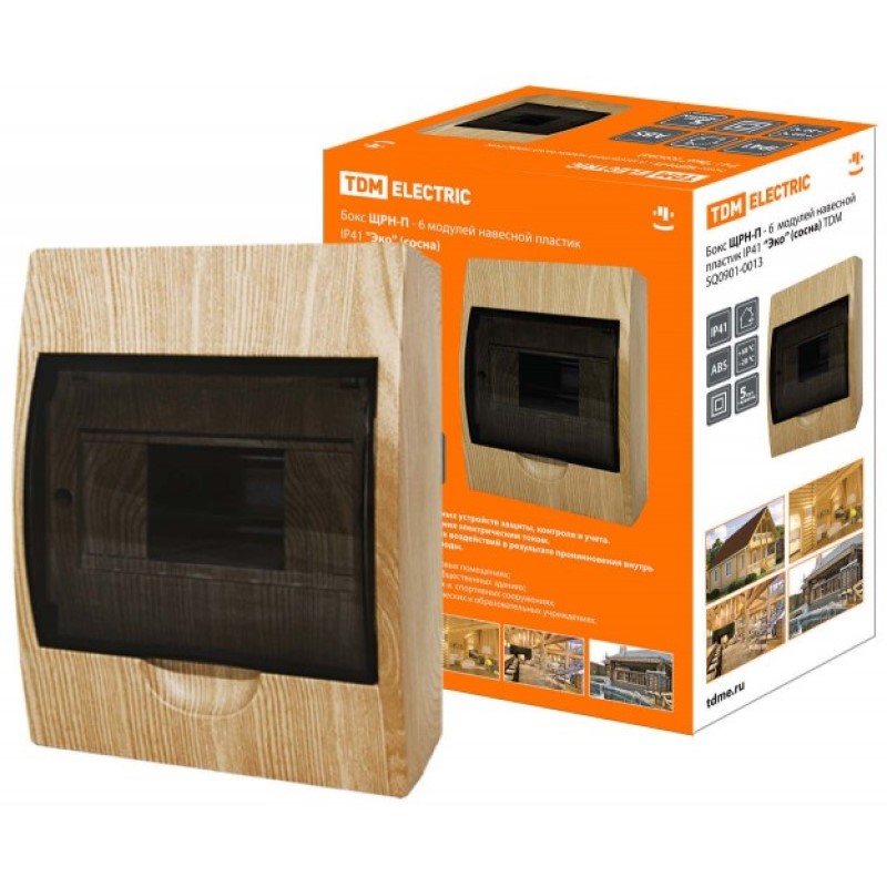 Бокс ЩРН-П-6 модулей навесной пластик IP41 "Эко" (сосна) TDM