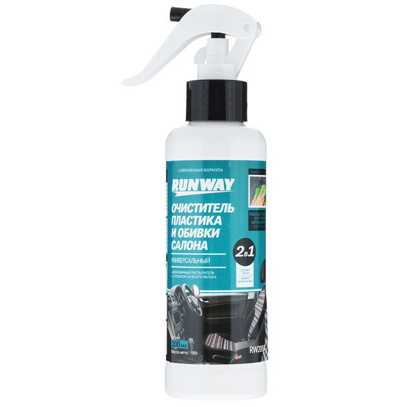 Очиститель пластика и обивки салона "Runway" RW2004 2в1 (200мл)