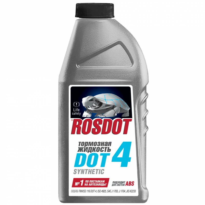 Тормозная жидкость ROSDOT 4 - cинтетическая тормозная жидкость соответствующая жестким требованиям ведущих российских и иностранных автопроизводителей, заливаемая на всех ведущих конвейерах России. Соответствует спецификации DOT 4 Plus Запатентованная рецептура - продлевает срок службы манжет и тормозных шлангов, применяемых в тормозных системах. Эффективные ингибиторы коррозии - обеспечивают надежную защиту деталей из стали, чугуна, меди, латуни и алюминия