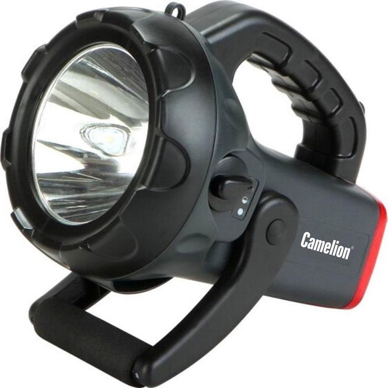 Устройство Camelion LED2931R2 действует от свинцово-кислотного аккумулятора 4 мА*ч, мощности которого хватает на 3.5 часов работы. Поставка осуществляется вместе с адаптером для зарядки и переходником. Габариты фонаря составляют 14x17x21 см.