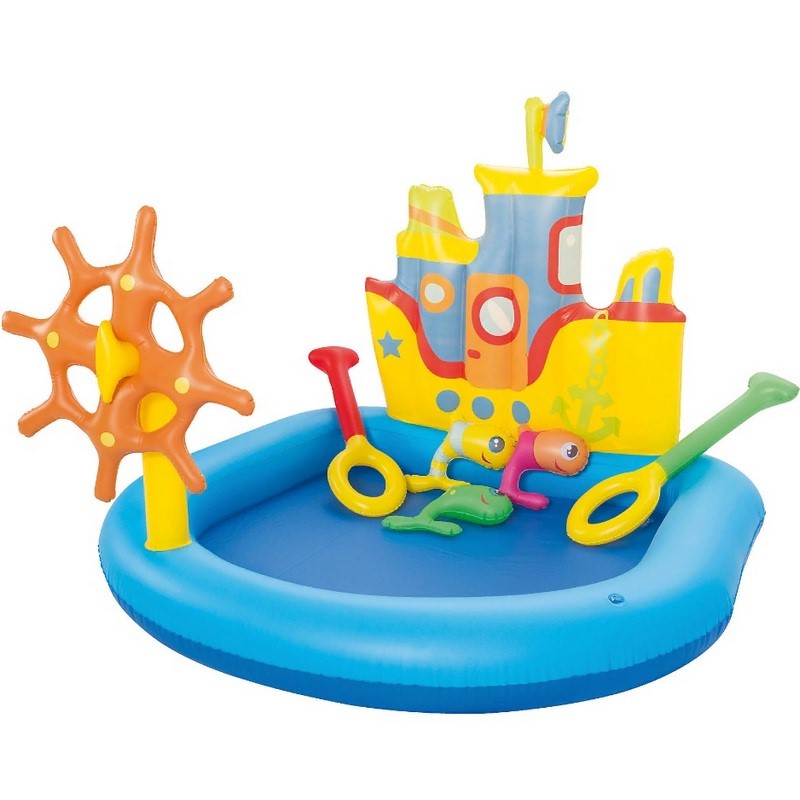 Игровой центр бассейн Кораблик порадует детей внешним видом, позволит стать настоящими рубаками. К комплекту прилагаются 2 удочки, рыбки и компас. Оригинальная модель изготовлена из прочного испытанного винила. Оснащена предохранительными клапанами.
