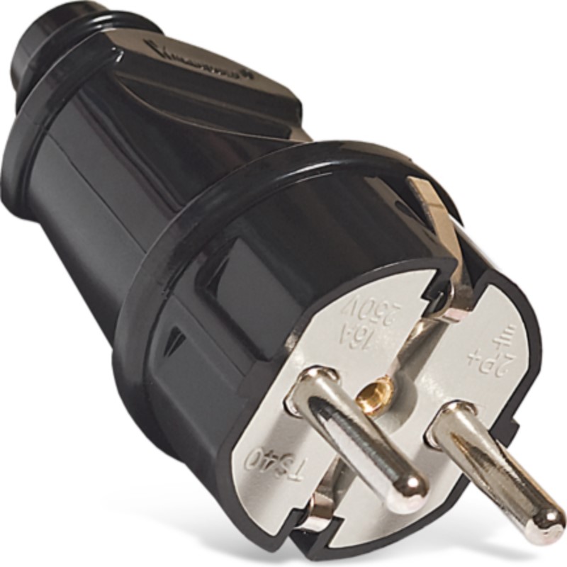 —Вилка прямая с/з черная 16А /250В (25/250)