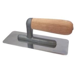 Кельма венецианская деревянная ручка D2410 применяется для нанесения декоративных фактурных покрытий, красок и венецианских штукатурок, кельма из нержавеющей стали, двухсторонняя полировка, радиус скругления - 5 мм, удобная деревянная ручка, размер 240*100 мм.