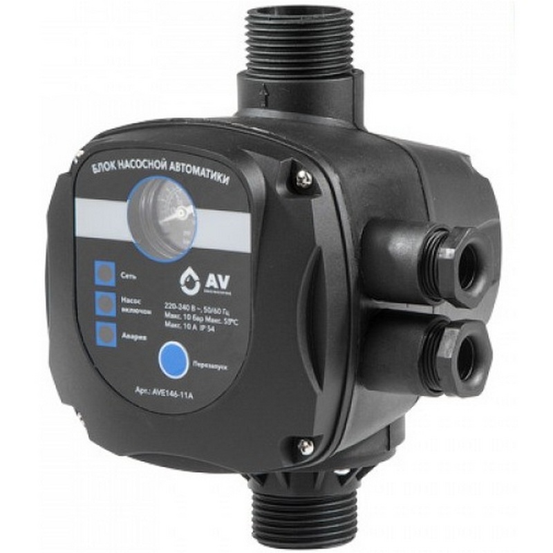 Обеспечивает запуск при понижении давления (открытие кранов) или остановку при отсутствии водного потока в системе водоснабжения (закрытие кранов)