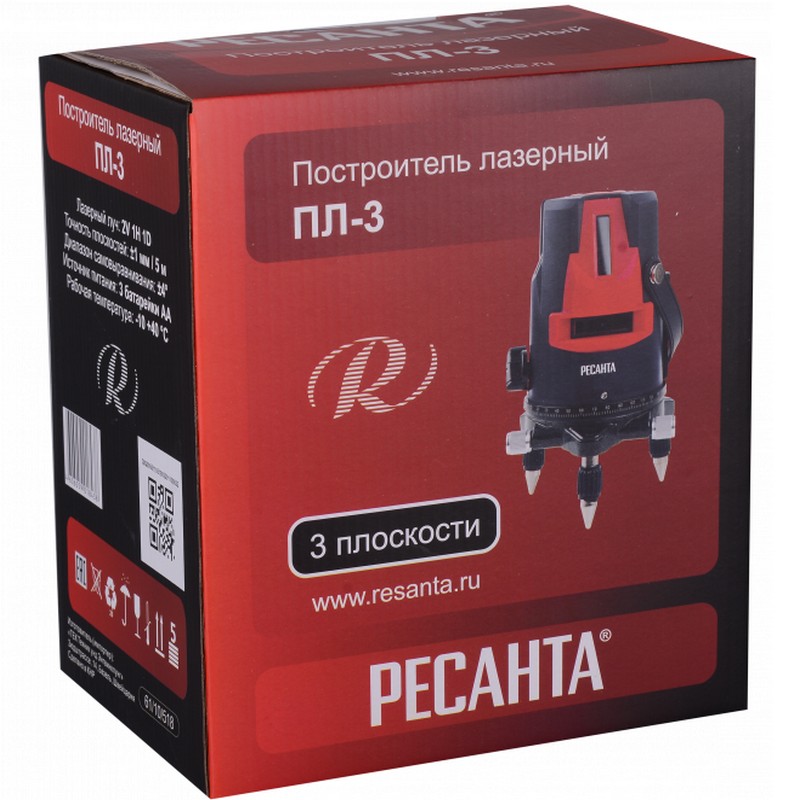 Прибор оснащен индикатором питания и работы режима работы с приемником, регулировкой положения вертикального луча, пузырьковым уровнем. Крепление штатива 5/8 дюйма. В комплекте 3 батарейки типа АА.