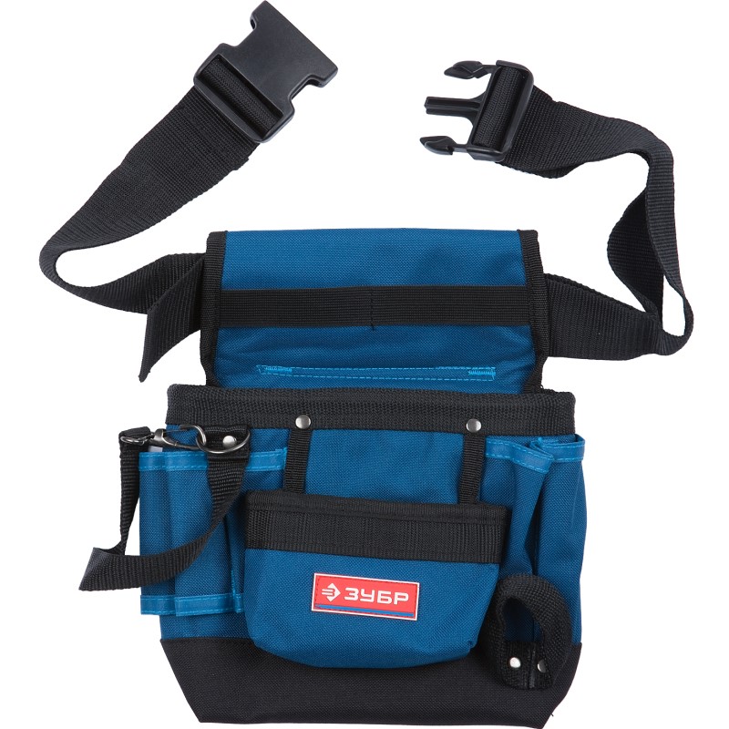 —Сумка-пояс ЗУБР "ЭКСПЕРТ" одинарная, держатель для молотка, 9 карманов