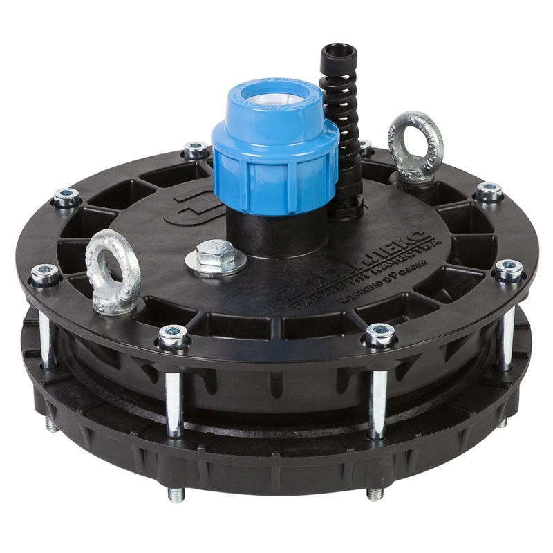 Оголовок скважинный Джилекс ОСП 140-160/32 выполнен из пластика - предназначен для удобства монтажа-демонтажа насоса и герметизации устья скважины, с установленным внутри нее насосом, напорной трубой ПНД, а также кабелем круглого сечения.