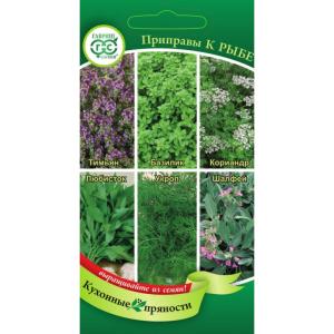 Пряные растение, вошедшие в состав смеси придают приготовленной рыбе неповторимый вкус и аромат, их легко и удобно выращивать на даче, они всегда под рукой, свежие — летом или засушенные на зиму. Тимьян — одна из лучших приправ к рыбе, обладает сильным пряным ароматом и слегка горьковатым вкусом. Базиликом сдабривают блюда из тушеной или запеченной рыбы, также его добавляют в уху и овощные гарниры. Семена кориандра придают пикантный вкус белой морской рыбе — треске, пикше, наваге. Любисток многие считают одной из лучших универсальных приправ, аромат его зелени напоминает запах сельдерея. Добавив его в рыбный бульон, маринад для жареной или тушеной рыбы или просто украсив рыбное блюдо, получите изысканное угощение, которое всем понравится.  Пажитник малознакомая на первый взгляд пряность, однако, это основная составная часть знаменитой смеси Хмели-сунели. Посыпав сушеной приправой из семян и зелени пажитника рыбу перед жаркой, вы получите приятный ореховый аромат. Шалфей часто добавляют в соусы для рыбных блюд