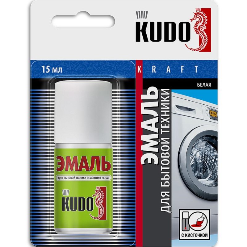 Эмаль для бытовой техники ремонтная с кисточкой KUDO® KU-7K1311 легко наносится на труднодоступные места, имеет высокий глянец, хорошую укрывистость, водостойкость, устойчивость к механическим повреждениям, превосходную адгезию к окрашиваемой поверхности.