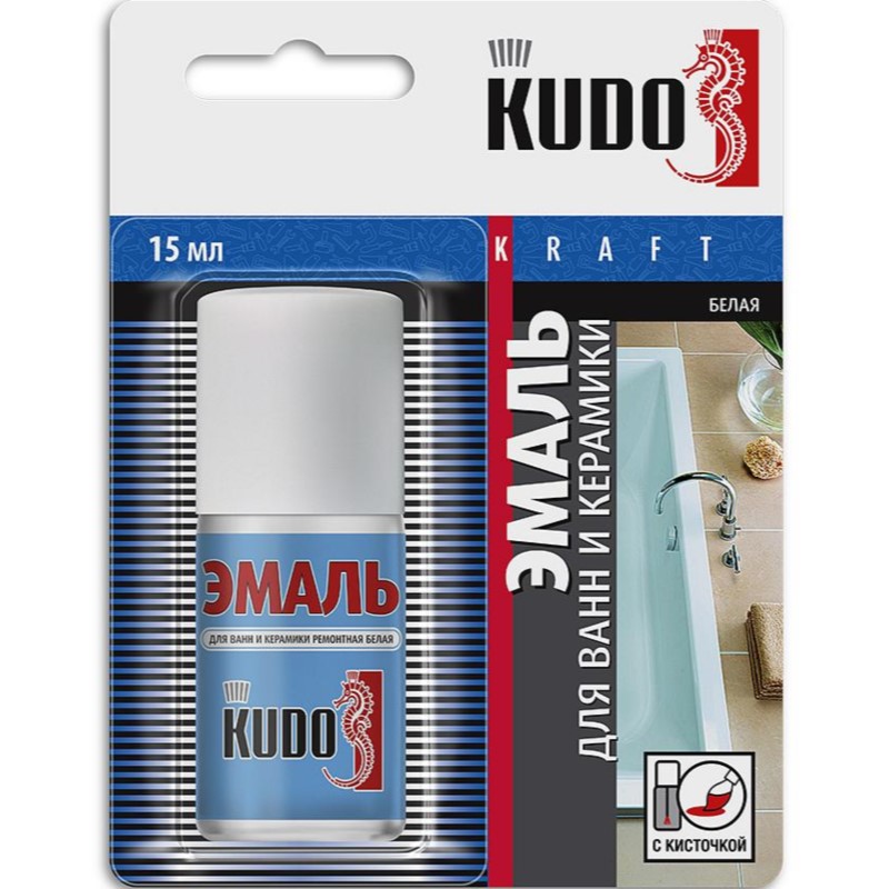 Позволяет значительно продлить срок эксплуатации старой ванны. Эмаль для ванн и керамики ремонтная с кисточкой KUDO® KU-7K1301 легко наносится на труднодоступные места, имеет хорошую укрывистость, водостойкость, превосходную адгезию к окрашиваемой поверхности.