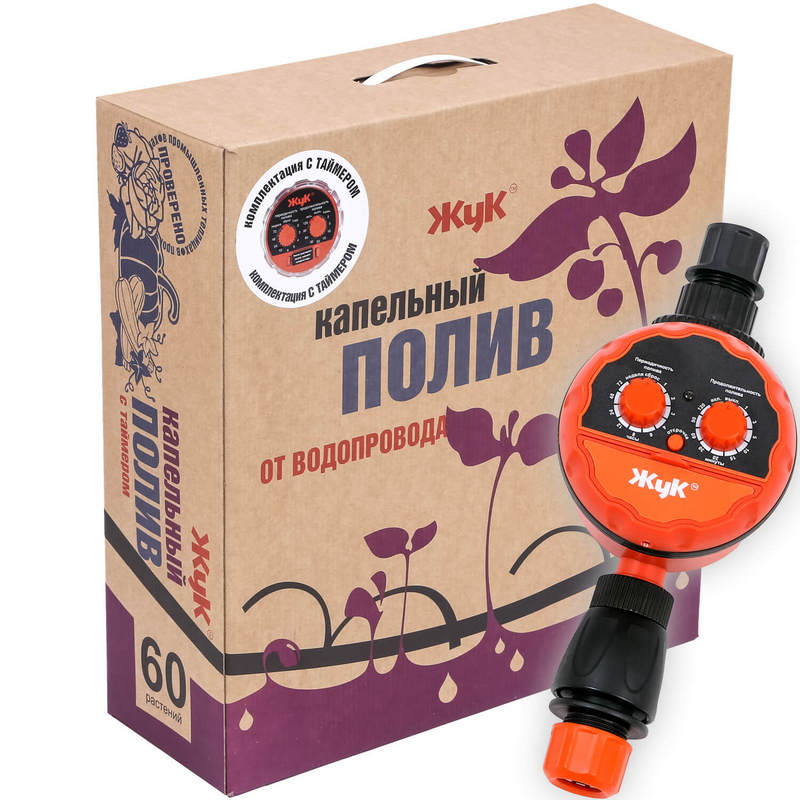 —Капельный полив от водопровода "Жук" с таймером 60 растений (тепличный)