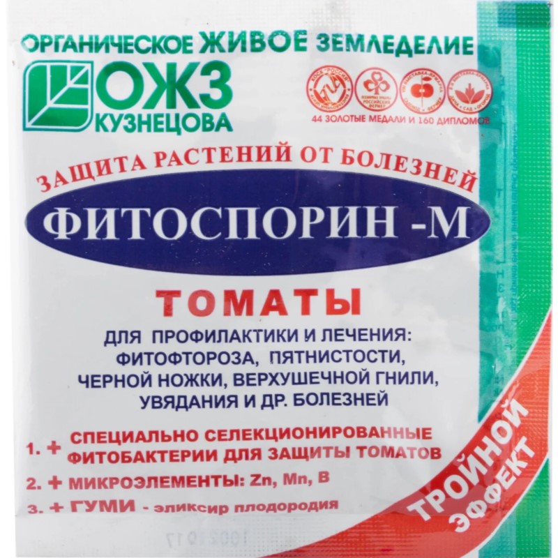 Абсолютно безопасный для здоровья человека и животных, но при этом не уступающий по силе химическим, препарат. Не вызывает привыкания у вредных микробов, служит как для профилактики, так и для лечения основных болезней растений. Обладает пролонгированным действием. Обогащен самыми необходимыми микроэлементами для томатов – Zn, Mg, В. Оздоравливает почву.