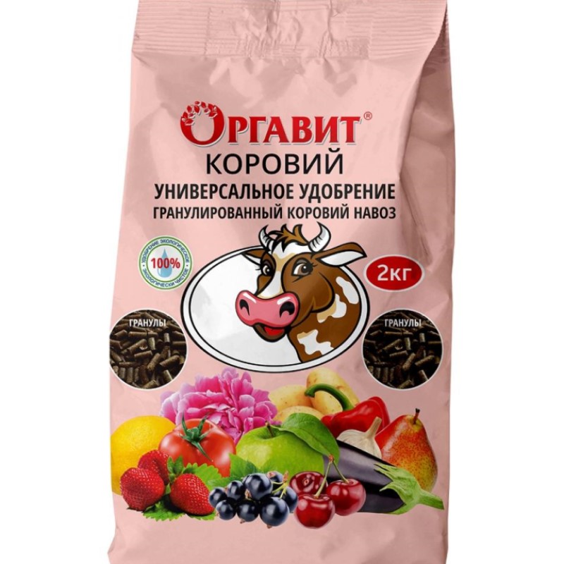 Удобрение производится на основе сухого коровьего навоза. Полезные вещества из органической массы сконцентрированы в компактных гранулах.