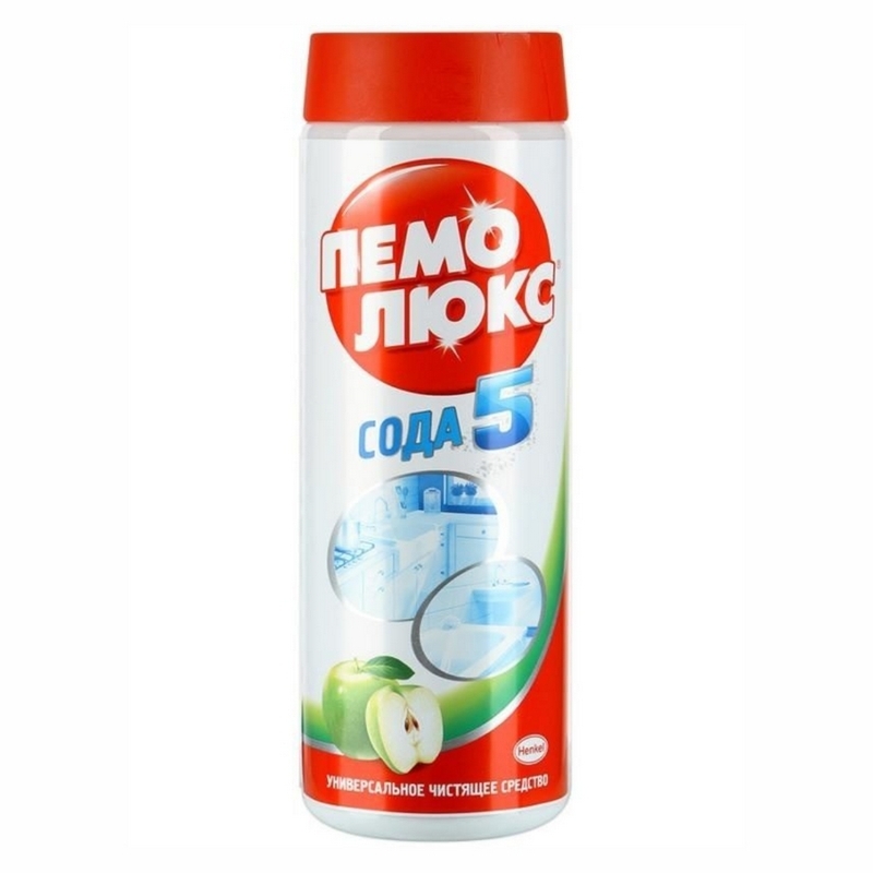 Чистящий порошок Пемолюкс Яблоко обеспечивает 5 слагаемых эффективной и безопасной уборки: Эффективность против жира и въевшейся грязи. Универсальное использование по всему дому. Бережное очищение разнообразных поверхностей. Безопасное средство - без агрессивных химикатов. Аромат чистоты и свежести Пемолюкс: Бескомпромиссная Чистота! Мощная формула Пемолюкс с содой и мягким абразивом не содержит опасных химикатов и подходит для чистки керамических, эмалированных, металлических и других твердых поверхностей на кухне, в ванной комнате и в прочих помещениях. С осторожностью использовать на полированных и пластиковых поверхностях. Не содержит хлор, дерматологически протестировано.