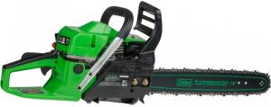 Комплект: цепь, шина, пластиковый кожух, зубчатый упор, cвечной ключ, емкость для смешивания топливной смеси, набор инструмента, напильник.
