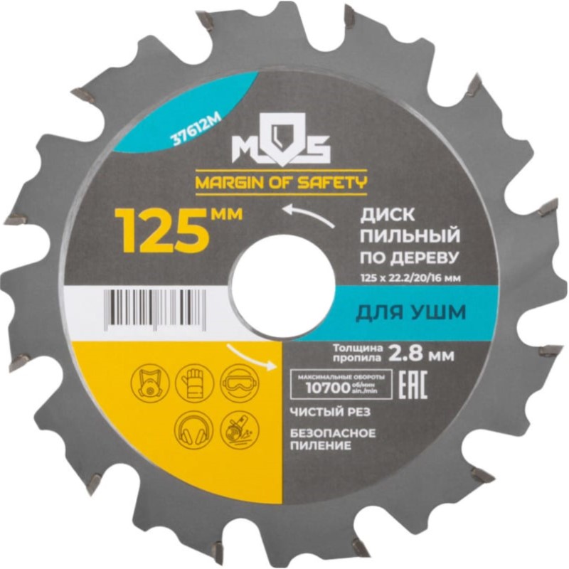 —Диск пильный по дереву, пос.диаметр 22,2мм, 12 зубьев + 2 кольца 22,2/20мм, 125мм FIT