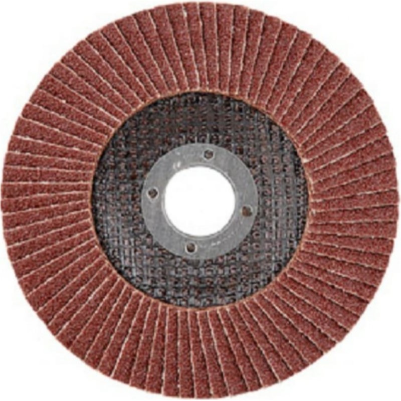 Технические характеристики: Тип: круг лепестковый торцевой плоский КЛТ-1 (прямой). Рекомендован для работы с плоскими деталями, внешними швами на прямолинейных поверхностях; Назначение: для шлифовальных работ по металлу, инструментальной стали, чугуну, дереву и пластику; Материал: корунд (оксид алюминия), тканевая основа, обод из инструментальной стали; Применение: с УШМ соответствующего типоразмера; Форма круга: плоская прямая (T27); Диаметр круга, мм.: 125; Посадочный диаметр, мм: 22.2; Размер абразивного зерна (зернистость): P100; Число сегментов (лепестков) на круге, шт: 72; Максимальное число оборотов в минуту (RPM): 12 250; Максимальная окружная скорость, м/с: 80.
