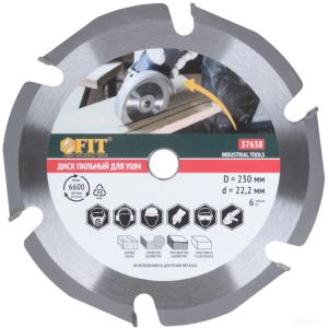 —Диск пильный по дереву, пос.диаметр 22,2мм, 6 зубьев с карбидными вставками, мелкий зуб, 230мм FIT