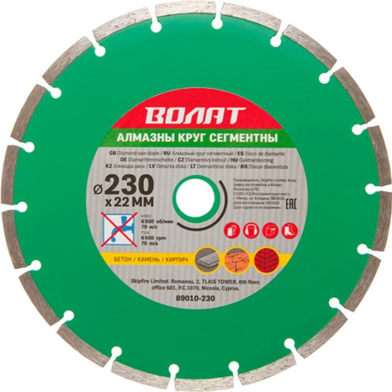 —Алмазный круг 230х22мм универсальный сегментный ВОЛАТ