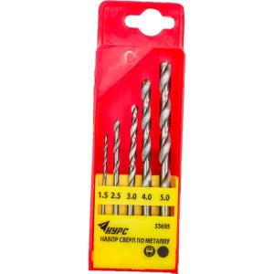 Набор сверл HSS по металлу полированных, 5шт (1,5-2,5-3-4-5мм) FIT