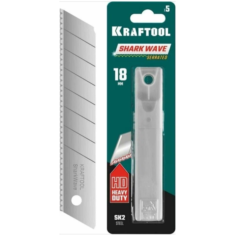 —Лезвия сменные сегментированные серрейторные 18мм 5шт KRAFTOOL Shark Wave