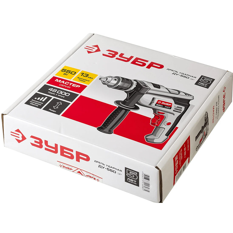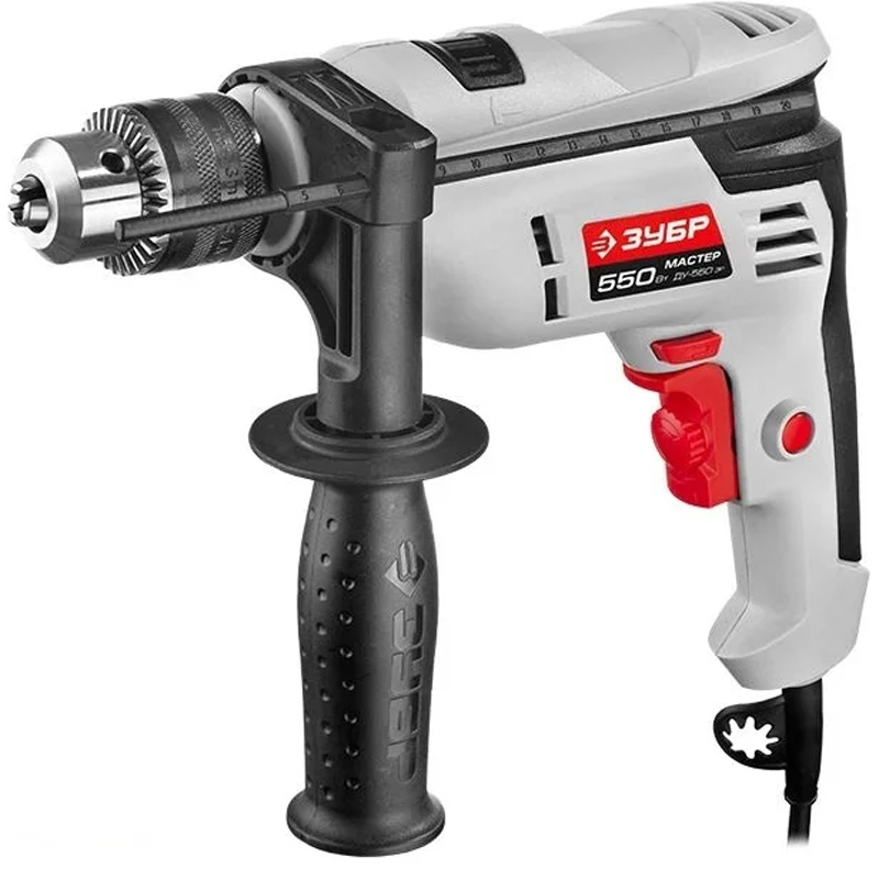 —Дрель Зубр МАСТЕР ударная, патрон 13мм, реверс, сталь 10мм/бетон 13мм/дерево 20мм, 550Вт