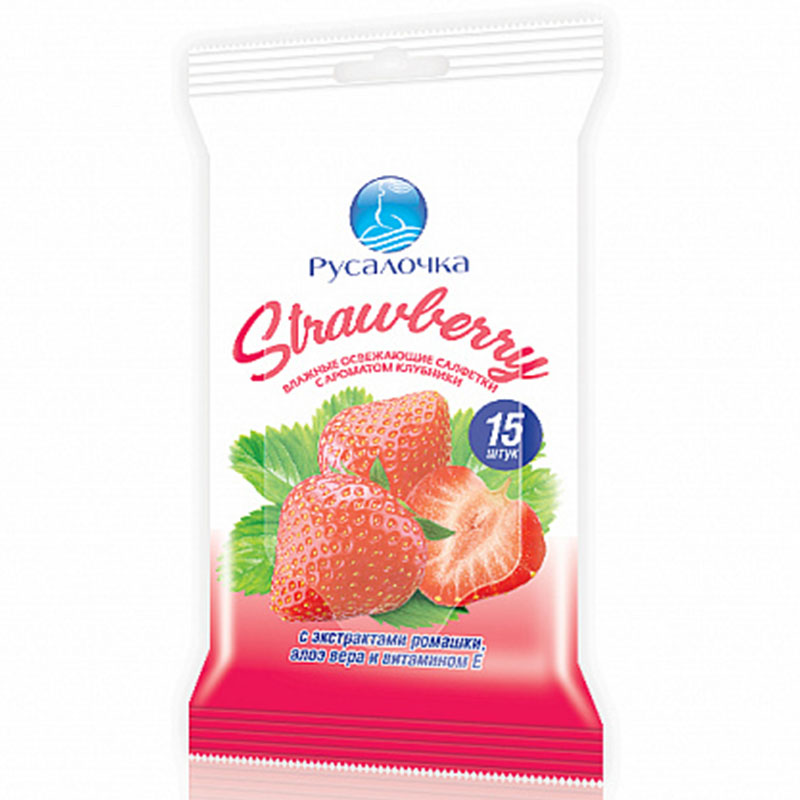 Влажные салфетки "Русалочка" клубника (15шт)
