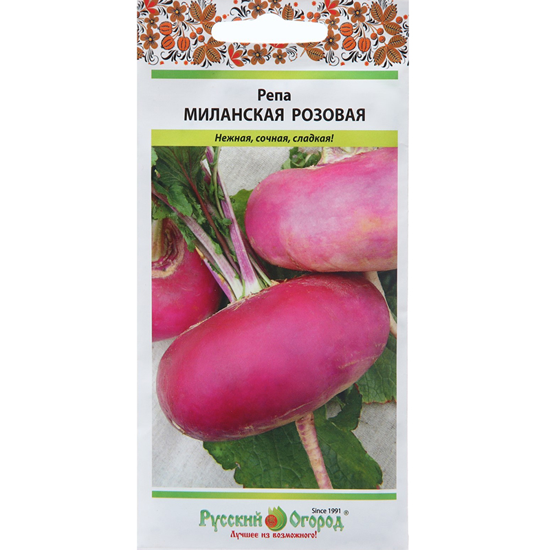 Репа Миланская Розовая – не только очень вкусный сорт, но также яркий и красивой формы! Эта репка скороспелая, период вегетации - 50-60 дней. Корнеплоды округло-плоские, розово-пурпурные. Не похожие на другие сорта. Кожура гладкая. Мякоть белая, сочная, вкуснейшая и сладкая. Сорт урожайный, устойчив к болезням!