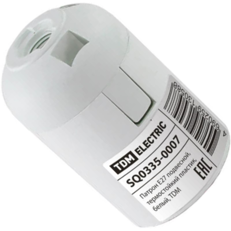 —Патрон Е27 подвесной, термостойкий пластик, белый, TDM