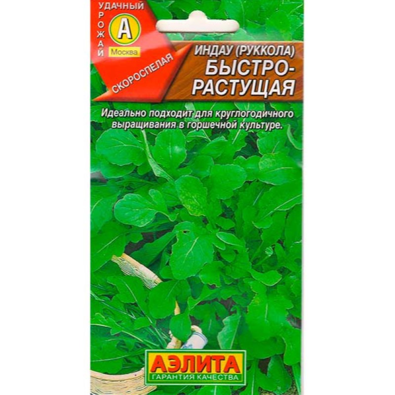 Холодостойкий сорт, отличается быстрым ростом. Позволяет получить урожай свежей, полезной рукколы уже через 20-25 дней после появления первых всходов. Предназначен для выращивания в открытом грунте, под пленочными укрытиями; идеально подходит для круглогодичного выращивания в горшечной культуре на подоконнике. Формирует высокую вертикальную розетку крупных темно-зеленых листьев. Масса одного растения около 20 г. Урожайность – 2-2,3 кг/м2. Пикантный вкус рукколы прекрасно сочетается с другими салатными культурами, рыбой, мясом, морепродуктами.