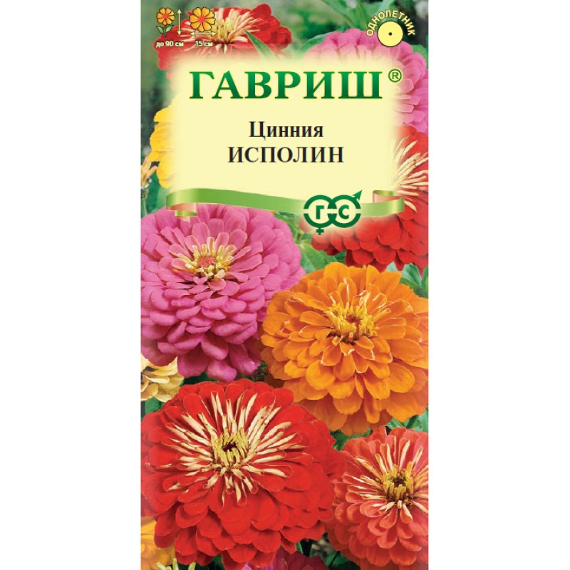 Смесь высокорослых крупноцветковых цинний для элитного оформления сада. Серия «Исполин» отличается чрезвычайно обильным и продолжительным цветением, прочными ветвящимися цветоносами, чистыми и стойкими к выгоранию тонами соцветий. Формирует приподнятые, разветвленные кусты высотой до 90 см. Соцветия георгиновидные, крупные, различных тонов, 15 см в диаметре, с высокой устойчивостью к неблагоприятным погодным условиям. Цветет с июня до заморозков. Циннии светолюбивы, засухоустойчивы и теплолюбивы; отзывчивы на полив, без длительного полива снижается интенсивность цветения и уменьшается размер соцветий. Выращивают рассадным способом. Семена высевают в апреле. Всходы появляются через 4-6 дней. В начале июня растения высаживают на расстоянии 20 см.