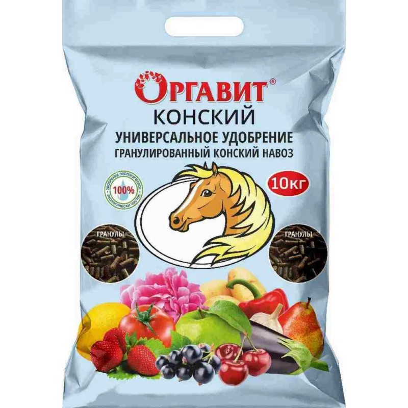 Конский навоз ценится больше всех остальных, потому что обладает огромным количеством полезных веществ для культурных насаждений и считается лучшим удобрением для истощенной ежегодными посадками растений почвы. По степени концентрации полезных элементов именно этот навоз стоит на первом месте, опережая куриный, коровий и любой другой. Один недостаток — он редкий и малодоступен большинству фермеров. Далеко не каждый может найти такое удобрение для своего участка.