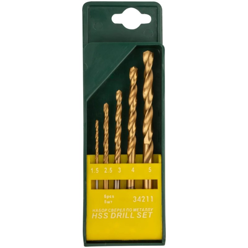 Набор сверл HSS по мет. титан. покрытие 5шт (1,5-2,5-3-4-5мм) FIT